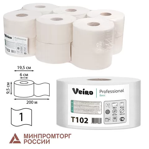 Бумага туалетная 215 м, VEIRO (Система Т8) с центральной вытяжкой, Comfort, 2-слойн/6
